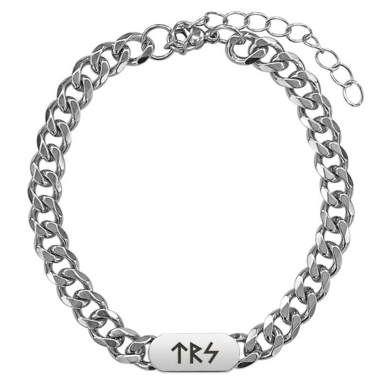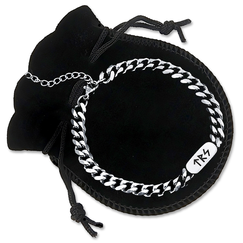 Браслет-цепь из нержавеющей стали с лазерной гравировкой в комплекте с бархатным мешочком.