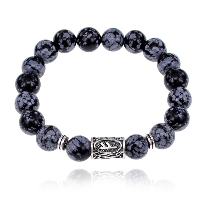 Браслет с руной Феху и камнем Снежный обсидиан