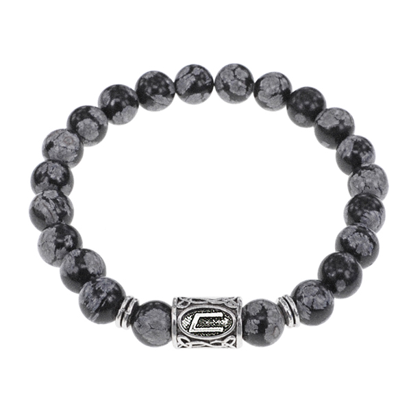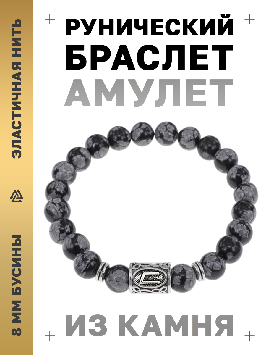 Браслет с руной Уруз и камнем Снежный обсидиан