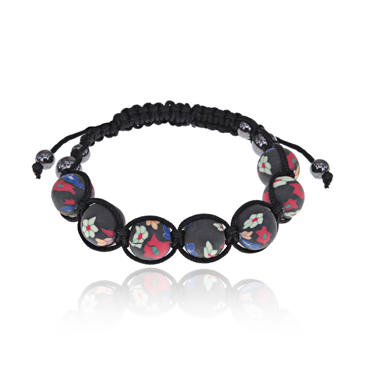 Браслет с бусинами Шамбала из полимерной глины.