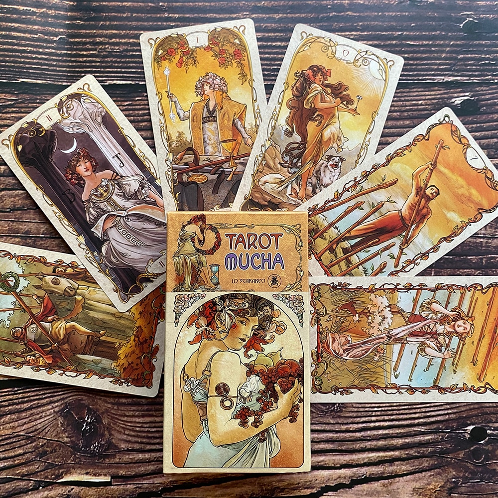 Это Таро вдохновлено живописью Альфонса Мухи, увлеченному вихрем новых течений в изобразительном искусстве на заре ХХ века, отдающего дань красоте, вечной мудрости и человеческой душе. В этой эксклюзивной колоде изображения на картах не ограничены полями, а буклет раскрывает все тайны, скрытые в картах.