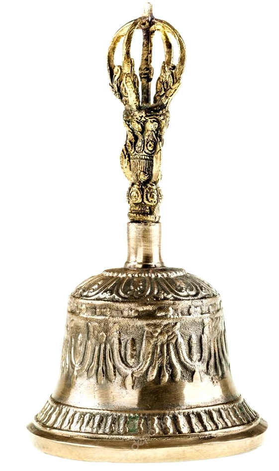 Колокольчик означает провозглашающий звук пустоты, который возникает из безграничной пустотности формы, распространяется во всех направлениях и снова растворяется в тишине пустоты. Звук тибетского колокольчика также символизирует звук зерна творения, происходящий из верховного божества Брахмы.